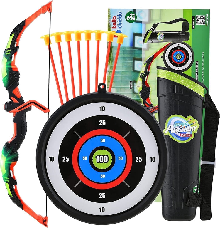 YCFUN Juego de Juguetes para Niños con Arco y Flecha con Objetivo y Alce, Juguetes con Arco Iluminado para Patio Trasero Al Aire Libre para Niños Pequeños a Partir de 3 Años